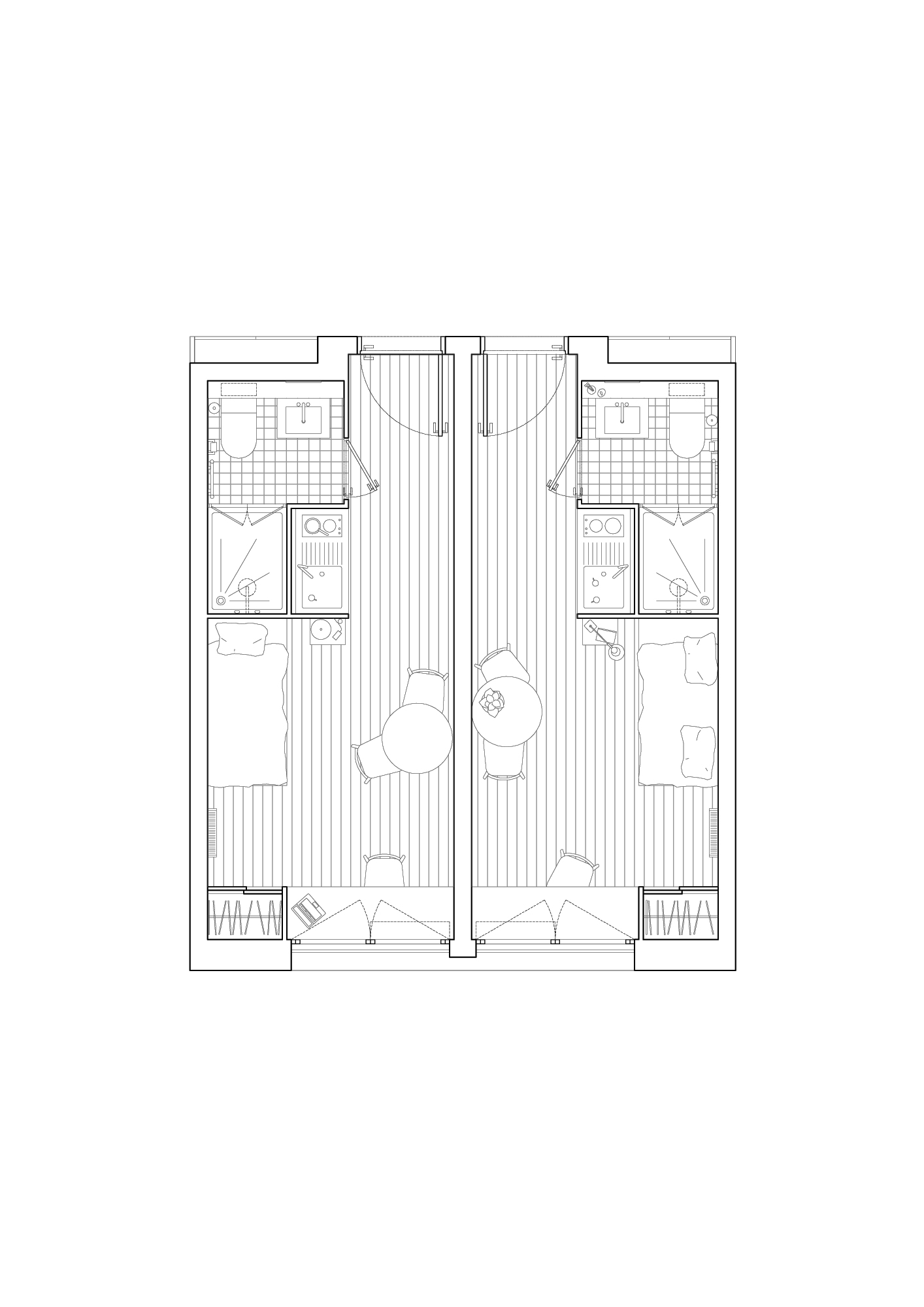 Les typologies de chambres, simples et fonctionnelles, sont pensées pour permettre une grande liberté d’usage et d’appropriation.